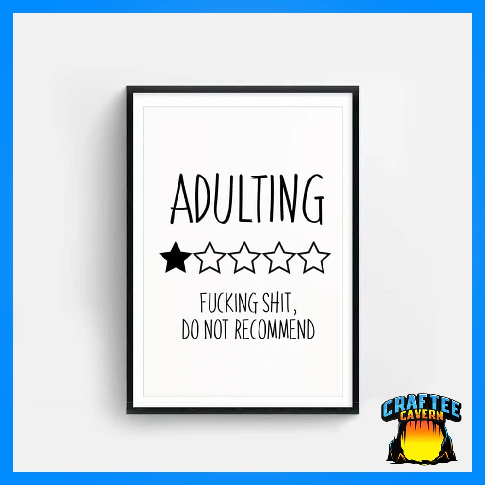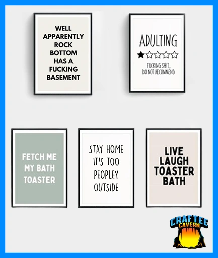 Adult Frames | Adulting, Rock Bottom, Live Laugh Toaster Bath, Fetch Me My Toaster Bath, Stay Home It's Too Peopley Outside |