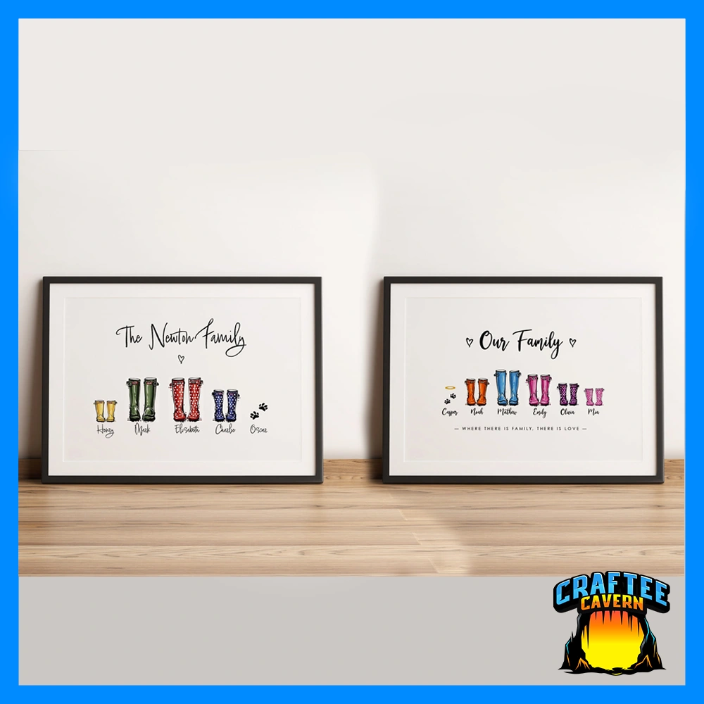 Looking for a gift for a special somebody? Have a favourite song or even possibly a proud family check through our framed images we offer. Everything on the artwork is editable from the characters down to the Wellies on the family print.